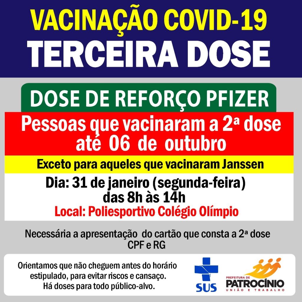 Na próxima segunda-feira (31) mais um público recebe a dose de reforço contra Covid-19, desta vez trata-se de pessoas que vacinaram a segunda dose até o dia 06 de outubro, com exceção daqueles que receberam a Janssen.