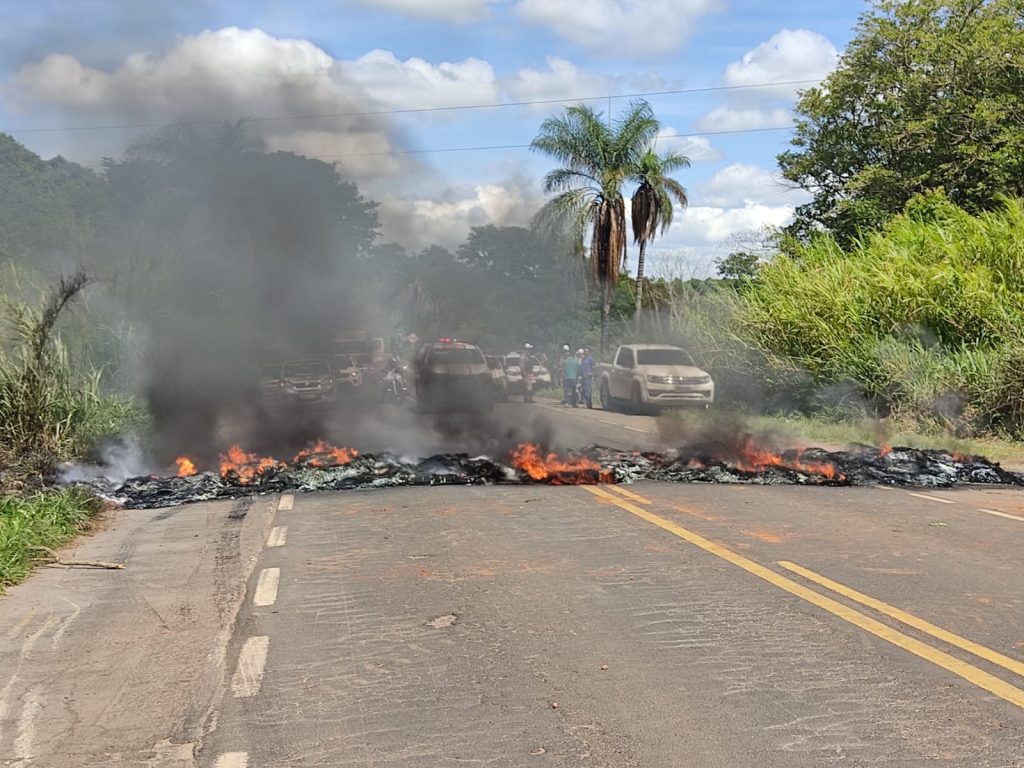 Os manifestantes atearam fogo em pneus e utilizaram máquinas agrícolas, bloqueando a passagem de veículos.