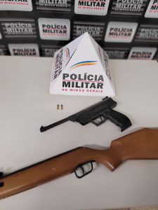 As armas de fogo foram apreendidas e o autor de 17 anos foi encaminhado à Delegacia de Polícia Civil.