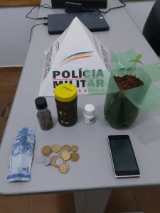 Diante dos fatos, o menor infrator foi apreendido e conduzido à Delegacia de Polícia Civil, juntamente com os materiais apreendidos: uma muda de planta (maconha); uma porção de maconha; 16 restos de cigarros de maconha; R$9,15 reais em dinheiro; um telefone celular.