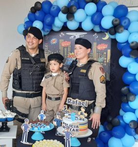 Assim que tomaram conhecimento do desejo da criança, militares do 46º Batalhão da Polícia Militar fizeram uma surpresa para o garoto e compareceu a festa de aniversário que foi realizada na residência dos seus pais, no bairro Parque dos Pássaros.