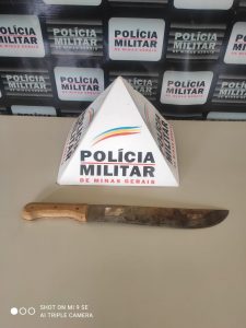 Após rastreamentos, o autor foi localizado próximo a um posto de combustível, sendo abordado e preso em flagrante delito, sendo encaminhado até a Delegacia de Polícia Civil de plantão, juntamente com o facão apreendido.