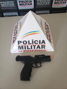 Diante do fato, os militares foram à residência do autor e durante buscas, localizaram e apreenderam uma arma (simulacro) tipo pistola “pt 24/7 da taurus que estava na cintura dele.