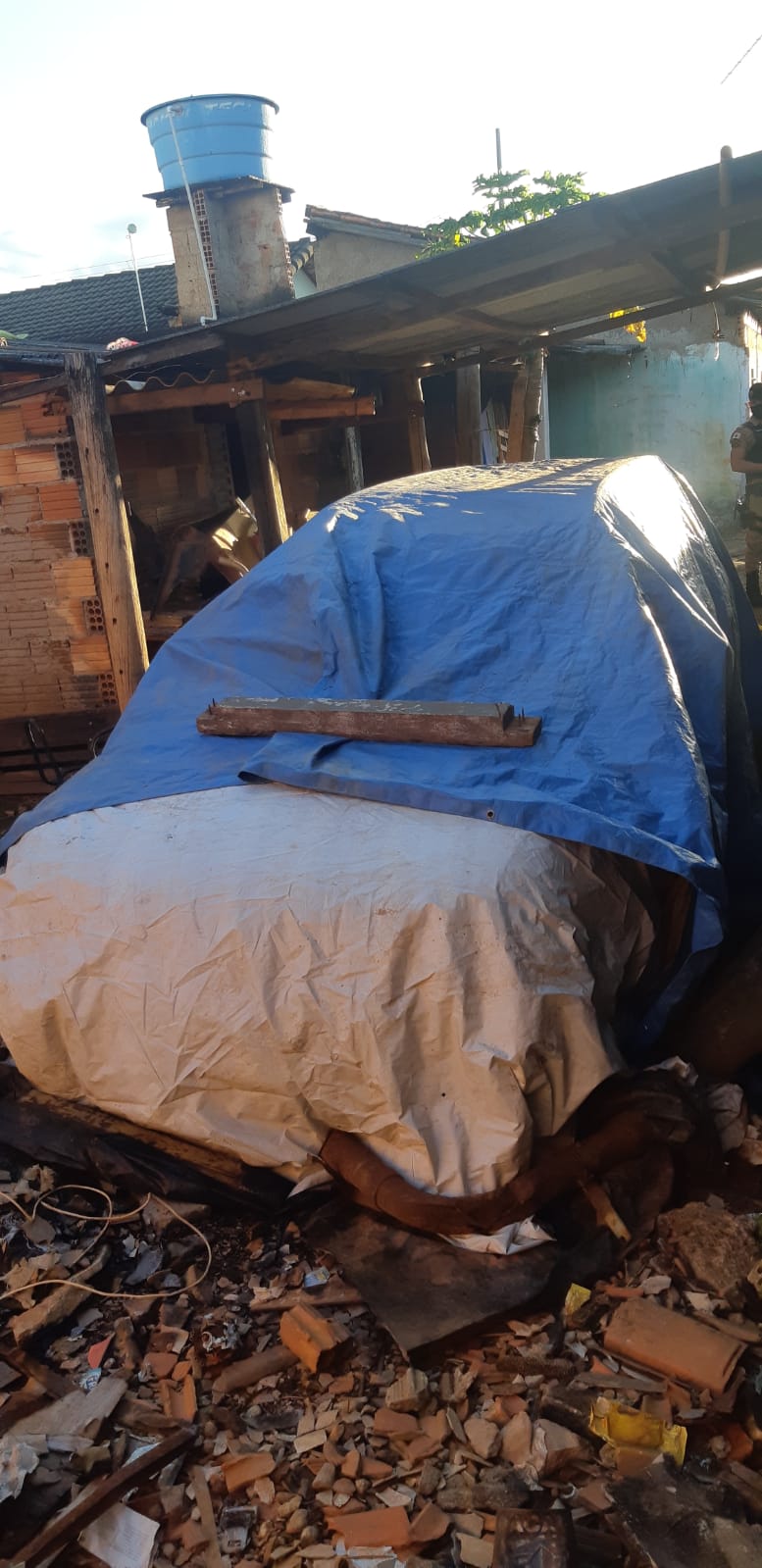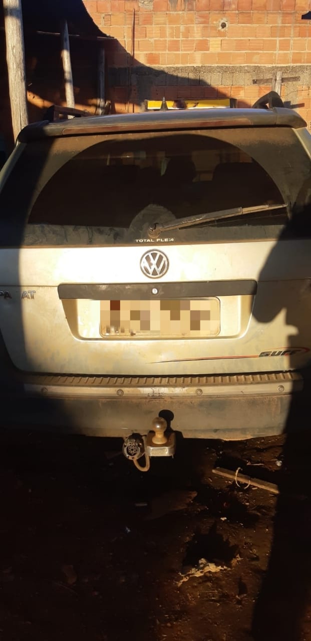 Diante do exposto, militares de Patrocínio deslocaram até o referido imóvel e encontraram o veículo VW/Parati escondido no fundo do quintal e sobre ele uma lona de cor azul, colocada para ajudar a ocultar o automóvel.