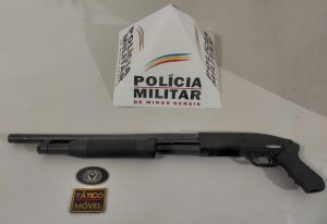 Durantes as buscas no carro do autor, foi localizada a arma de fogo, uma espingarda calibre 12, marca MAVERICK, modelo 88, que estava no banco do passageiro.