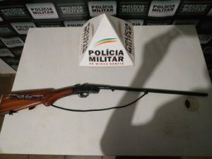 No local e dialogando com o autor de ameaça, este levou os militares até onde sua arma de fogo, uma espingarda calibre 38, estava escondida, em uma área de mata fechada.