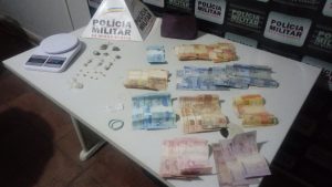 Diante dos fatos, realizou abordagem com efeito surpresa e prendeu um autor de 31 anos e apreendeu nove pedras pequenas de crack, cinco pedras médias de crack, um papelote de crack moído, cinco buchas de maconha, uma balança de precisão e 1.116,00 reais.