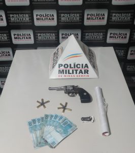 Diante da fundada suspeita, o autor foi abordado e durante as buscas foi encontrado em sua cintura um revólver calibre .32 carregado.