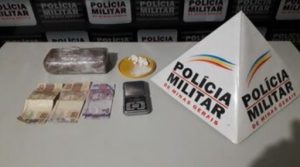 Após abordagem policial no Beco Boiadeiro, em Monte Carmelo, nesta sexta-feira (22), por volta das 19h30, a Polícia Militar localizou uma barra de maconha, uma balança de precisão, uma pedra bruta de cocaína e R$ 105,00 reais.