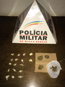 Foi realizada a abordagem do autor e buscas no local, sendo localizados os materiais: 15 pedras de crack; três tabletes pequenos de maconha; uma porção pequena de maconha; dois papelotes de cocaína.