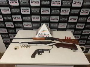 Durante buscas e parlamentação com o autor, foram localizadas e apreendidas as três armas de fogo e munições.