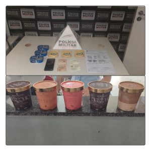 No veículo estava o co-autor, de 30 anos, e alguns produtos do supermercado em duas sacolas.