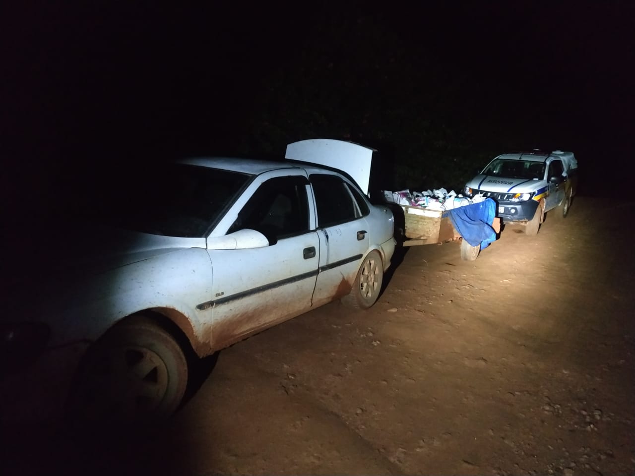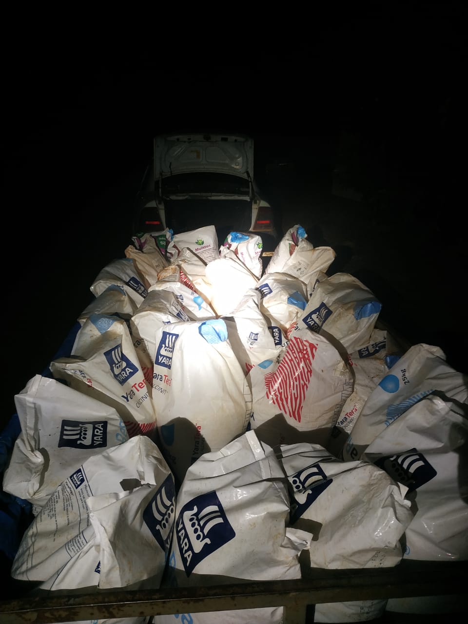 Nesta quarta-feira (10), por volta das 22h30, durante patrulhamento na região de Bom Jardim, a equipe da Patrulha Rural realizou abordagem a um veículo GM/Vectra, ocupado apenas pelo seu condutor. Ao verificar uma carretinha que o veículo puxava, os militares viram uma grande quantidade de sacos de adubos diversos, aumentando a suspeição sobre o abordado.