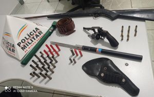 Diante disto, com autorização dos moradores, com o fim de esclarecer tais fatos, a entrada dos militares foi franqueada no imóvel, as guarnições lograram êxito em localizar duas armas de fogo e diversas munições.