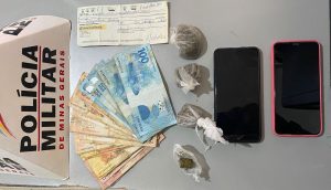 Durante a abordagem foi apreendido os seguintes materiais: quatro tabletes de maconha, a quantia de R$1.824,00 reais, R$4.400,00 em cheque e dois aparelhos celulares.