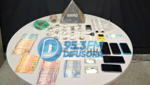Em uma residência no bairro Padre Pio, os policiais encontraram mais de R$ 11 mil em dinheiro, uma porção de maconha, seis munições intactas calibre 38 e um estojo deflagrado.