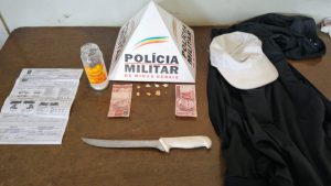 De posse das informações, os militares iniciaram os rastreamentos, sendo que localizaram os dois autores, de 24 e 22 anos, na Rua Ari de Paulo Caixeta, já no bairro Enéias, onde durante a abordagem e buscas no interior da residência, foram localizadas oito pedras de crack, um vidro contendo aproximadamente 30 gramas de ácido bórico, R$20,00 em dinheiro e uma faca.