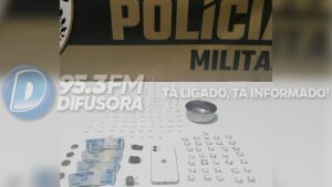 Na busca pessoal, os policiais encontraram uma bucha de maconha com a autora, enquanto o criminoso não portava nada. Porém, durante varredura no local onde o material havia sido jogado, os militares localizaram um saco plástico cinza contendo grande quantidade de cocaína.