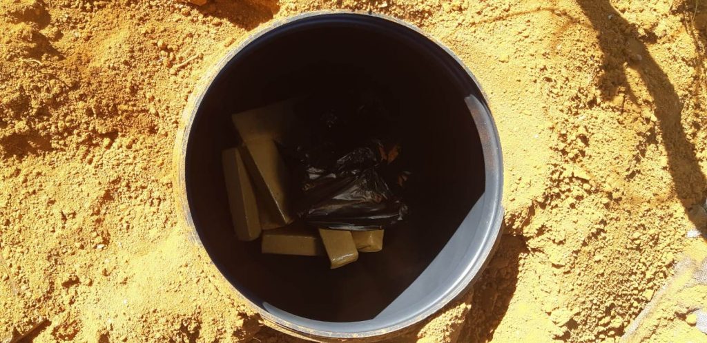 Neste sábado (23), por volta das 16h50, durante o desencadeamento da Operação 10ª RPM Contra o Crime foi recebida uma denúncia anônima via DDU, de que teria certa quantidade de entorpecentes escondida dentro de um tonel enterrado em uma vicinal sentido aeroporto, perto da avenida Vereador Manoel Carlos de Jesus, no bairro Cruzeiro da Serra.