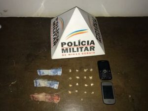 Os militares aproximaram-se do local, momento em que a autora tentou engolir alguns materiais, mas foi impedida, sendo com ela encontrada a quantia de seis pedras de substância semelhante à crack, e com o autor, a quantia de 14 reais, além de dois celulares.