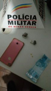 Foi procedida a abordagem do indivíduo, 33 anos, sendo localizado em sua posse, juntamente com seu telefone celular, duas pedras de crack e uma bucha de maconha.