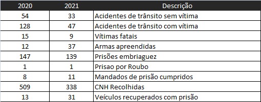 A operação deste ano comparada com o ano de 2020 apresentou os seguintes resultados.