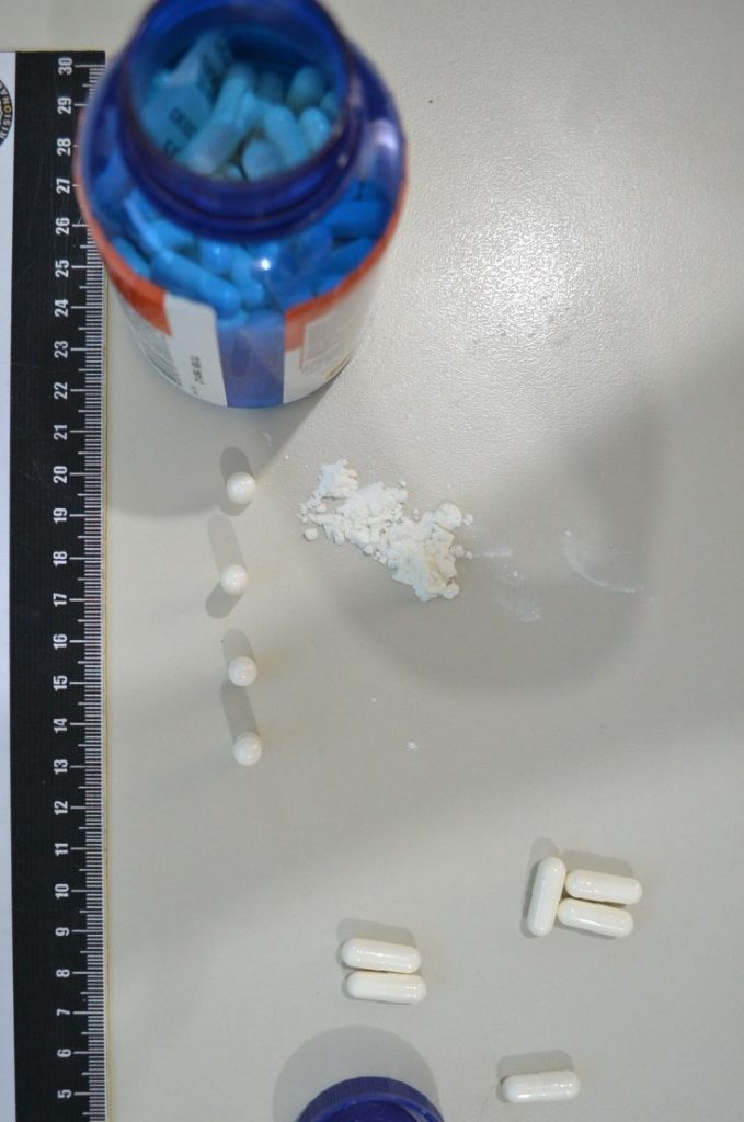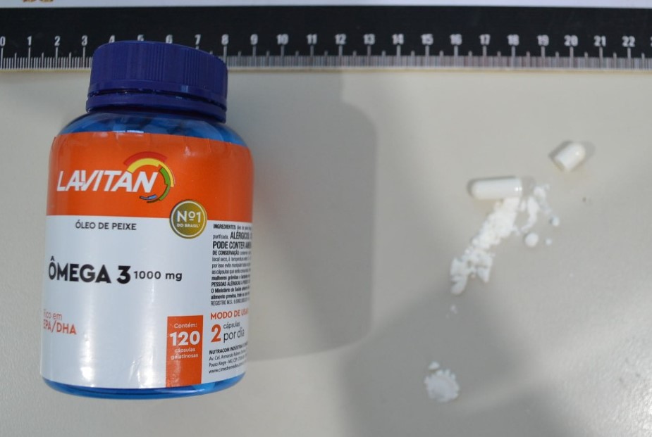 Ao abrir o frasco, foi possível verificar que haviam cerca de 140 cápsulas não gelatinosas na cor branca, as quais continham um pó branco de uma substância semelhante a cocaína.