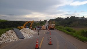 O trecho do km 464 da BR-365 está parcialmente interditado para a realização de serviços de muita importância para evitar o rompimento de barragem de uma represa localizada às margens da rodovia. Todo o trabalho está sendo executado pela Prefeitura de Patrocínio, através da Secretaria Municipal de Obras Públicas.