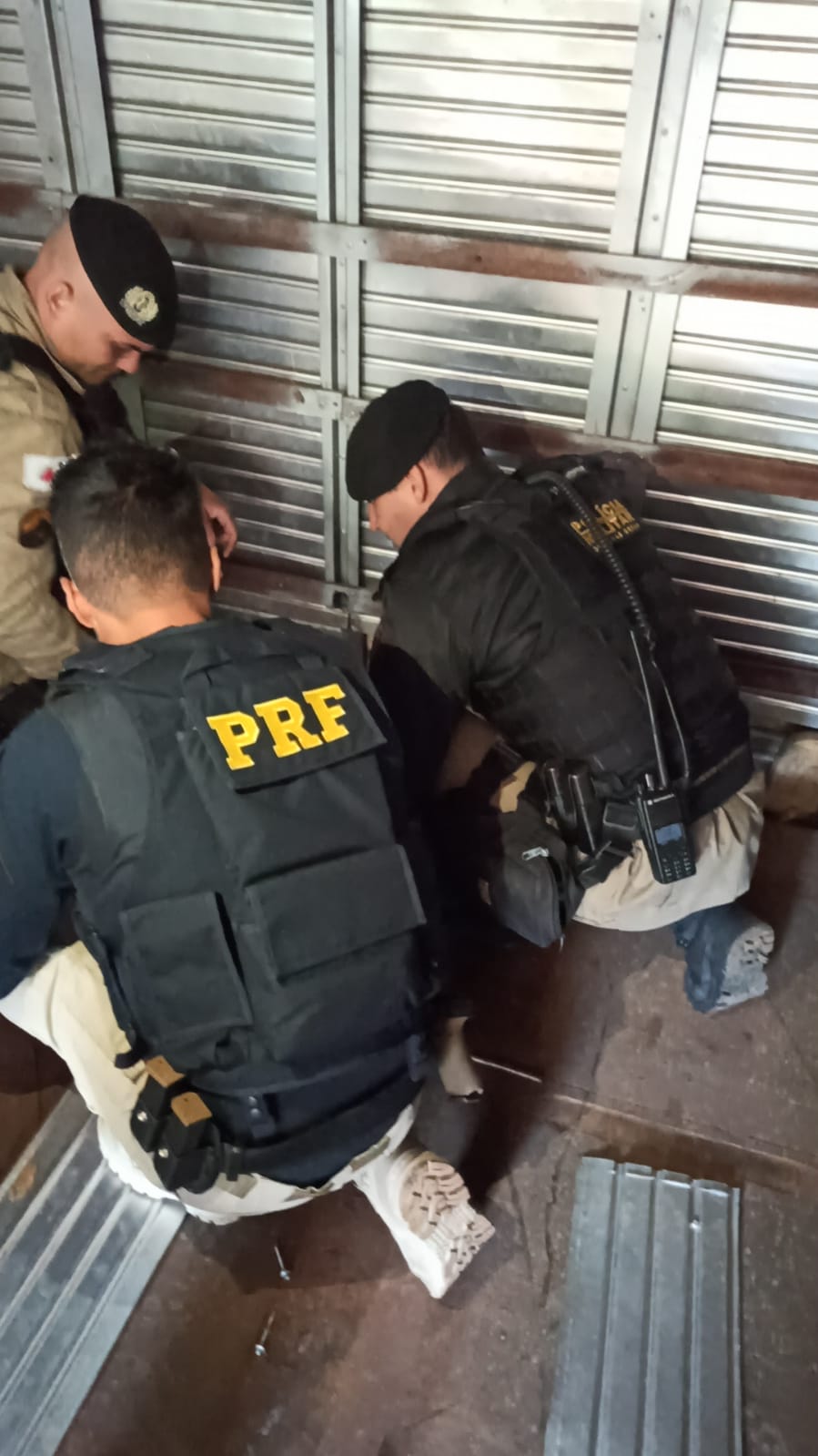 Logo após, com o apoio de outras equipes policiais, foi realizada uma minuciosa revista no caminhão, sendo identificado um compartimento suspeito no fundo do baú.
