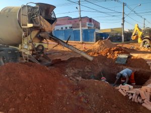 Nos próximos dias será feito a imprimação e implantação de massa asfáltica na região do Camisa 10, no balão, a canalização da água se encerrou sendo que a mesma desagua no Córrego Rangel onde este, está sendo canalizado.