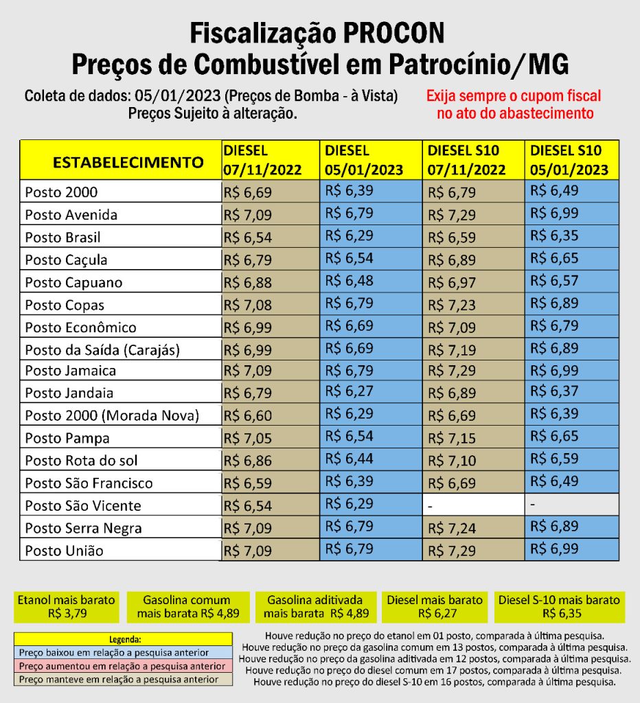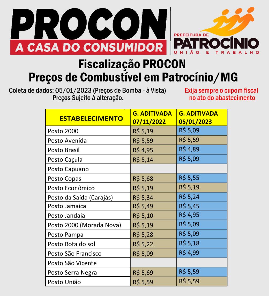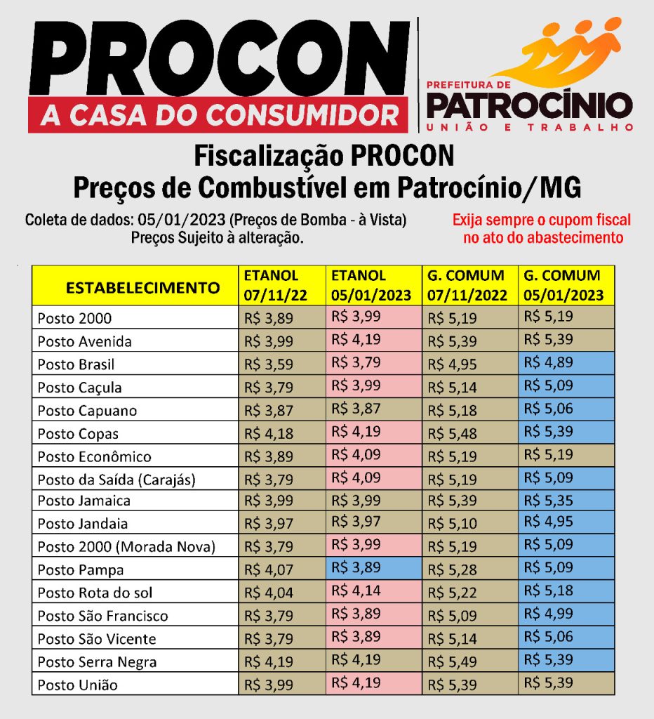 O Procon Municipal divulgou nesta quinta-feira (05), mais uma pesquisa comparativa de preços dos combustíveis comercializados nos postos de abastecimento da cidade. Os valores foram aferidos em 17 postos, e se referem aos preços de bomba à vista.
