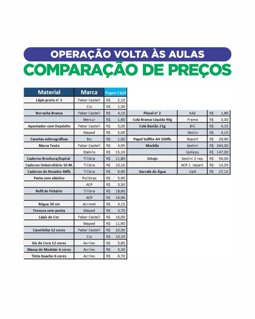 A volta às aulas, prevista para a próxima semana, no dia 04 de fevereiro, acende um alerta para os preços dos materiais escolares no comércio local. Diante disso, o PROCON de Patrocínio intensificou a fiscalização e a pesquisa de preços desses itens.