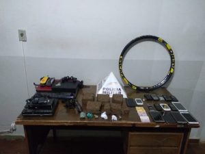 Os policiais foram até a casa do homem de 23 anos que estava na bicicleta e durante buscas encontraram quatro barras de maconha e três porções pequenas da droga. Ainda foi abordada outra mulher de 29 anos e com ela encontrado também um tablete de maconha. As guarnições ainda receberam a informação que um jovem de 21 anos estaria participando do grupo criminoso e que estaria guardando a arma de fogo apreendida, sendo feita diligência no imóvel onde foi localizada mais uma barra da droga repartida em dois pedaços. Todos envolvidos, as quatro mulheres e os dois homens foram entregues na delegacia de plantão da Polícia Civil.