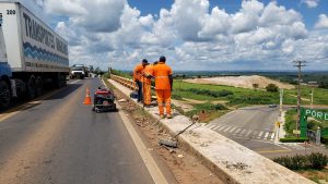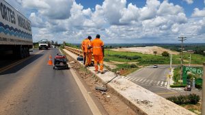 Com o consentimento do prefeito, autorização do DNIT e participação da Polícia Rodoviária Federal (PRF), as obras foram iniciadas na manhã desta quinta-feira (07). Além da lateral do viaduto, a equipe de obras está realizando também uma operação tapa buracos necessária na cabeça do viaduto.