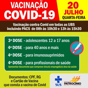 Vale ressaltar que é necessária a apresentação do cartão que consta as últimas doses, CPF, RG e para os profissionais de saúde documento que comprove vínculo empregatício com a área da saúde.