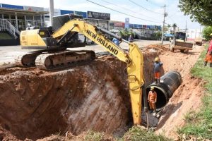 “No lado direito onde já subimos com os tubos, ainda temos que fazer a base, estamos fazendo as caixinhas interligando as bocas de lobo nos tubos e no balão da Av. Jacinto Barbosa devemos terminar nessa semana uma caixa que vai ligar tanto o lado direito quanto o lado esquerdo”, informou o secretário.