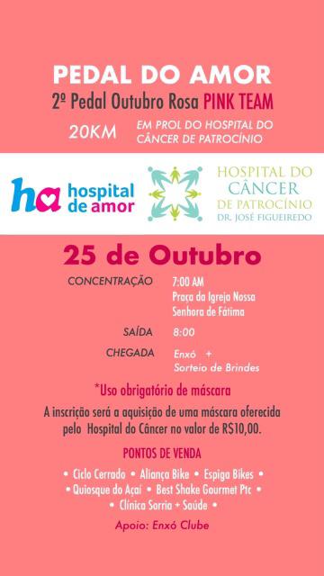 Tratado como Pedal do Amor, neste ano, o evento será realizado em parceria com o Hospital do Câncer de Patrocínio – Dr. José Figueiredo.