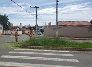 Com o período de chuvas, intensifica-se a necessidade da poda da grama nos canteiros centrais da cidade de Patrocínio, que crescem bastante em um curto período.
