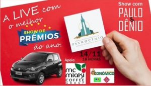 Diante das dificuldades enfrentadas pelas paróquias da cidade de Patrocínio em virtude da não realização das tradicionais festas, a Paróquia Nossa Senhora do Patrocínio realizará, neste sábado (14), o Show de Prêmios para arrecadar recursos para a manutenção dos trabalhos nas igrejas da Paróquia.