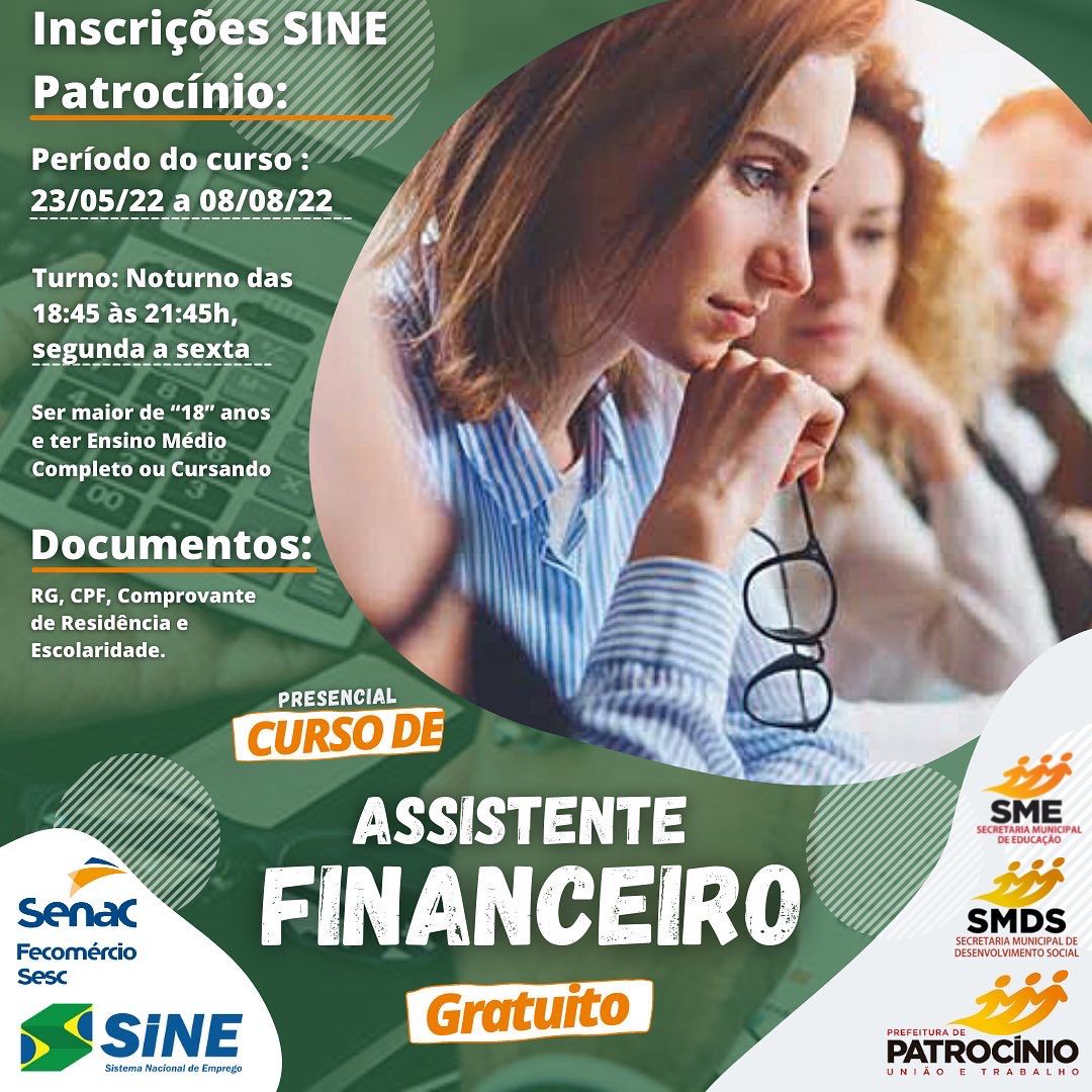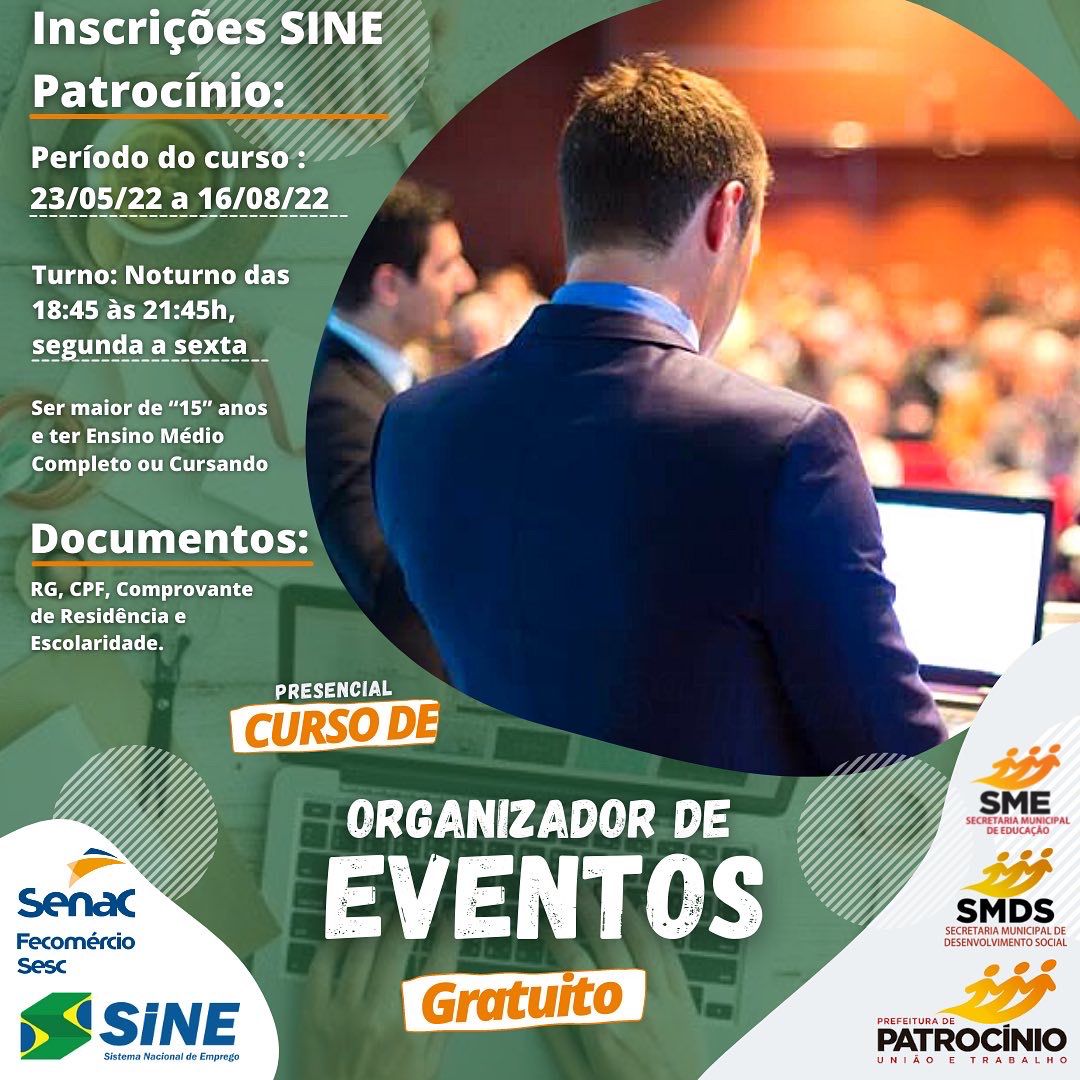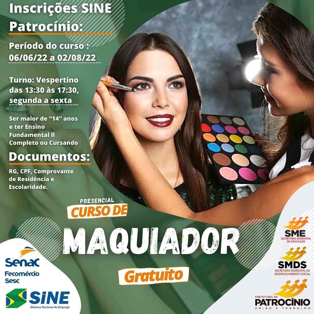 O Sistema Nacional de Emprego (Sine) de Patrocínio em parceria com o Senac, está ofertando seis cursos profissionalizantes 100% gratuitos.