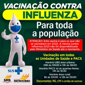 Vale ressaltar que a população pode receber a dose uma vez por ano, e esta vacina é para todos que não vacinaram em 2022, pois a vacina 2023 não foi disponibilizada pelo Ministério da Saúde até o momento.