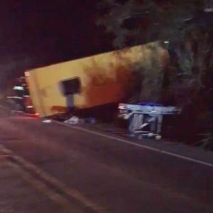 Várias pessoas são socorridas após tombamento de micro-ônibus na MG-187
