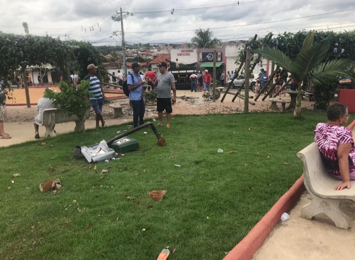 Além de fazer grandes estragos na praça Antônio Bernades Dias, vários bancos foram arrancados deixando todos bastante assustados.