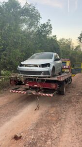 Diante das informações, a equipe intensificou o patrulhamento na localidade e, durante as buscas, avistou uma porteira aberta em um ponto isolado. Ao verificar o local, os militares encontraram o veículo escondido em meio à vegetação.