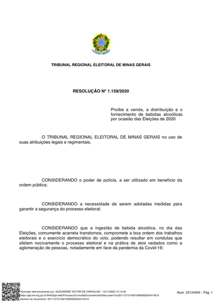 Neste domingo de eleições (15), das 6h às 18h, está proibida a venda de bebidas alcoólicas em todo o estado de Minas Gerias. A medida tem o intuito de evitar transtornos causados pela embriaguez e garantir a segurança do processo eleitoral.