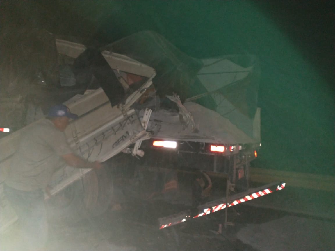 Quando o mecânico realizava o serviço percebeu um impacto na parte traseira do Semi reboque, que após o acidente acionou a serviço de ambulância de Lagoa Formosa que esteve no local socorrendo o motorista da outra combinação veicular.