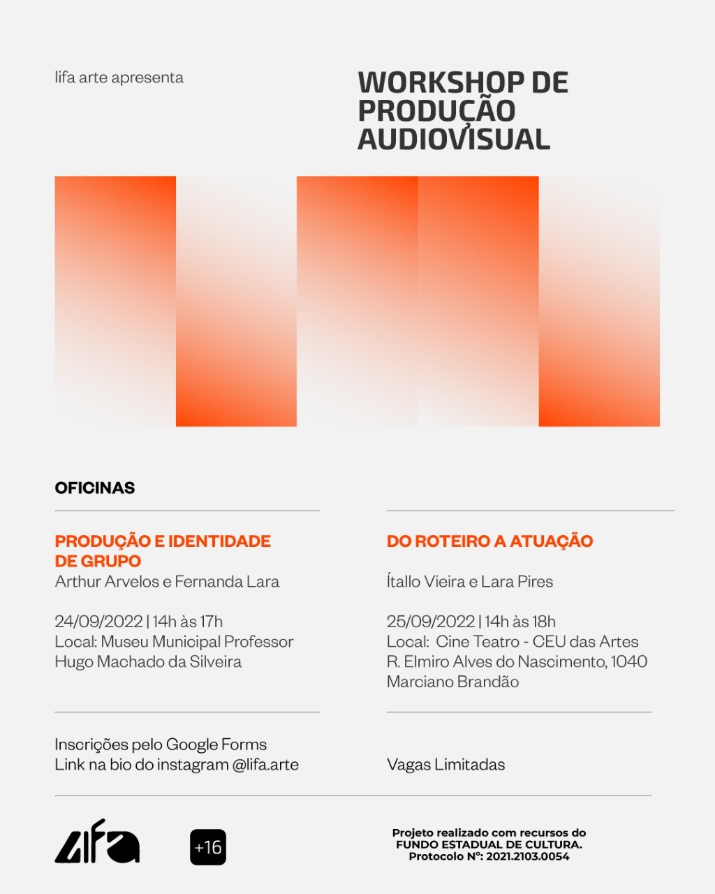 Lembrando que as inscrições estão abertas e são gratuitas e podem ser feitas através do Instagram da @lifa.arte clicar no link da bio.