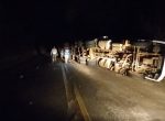 Jovem perde controle direcional e caminhão tomba na BR-365