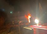 Militares do Corpo de Bombeiros realizam combate à incêndio em barracão de marcenaria