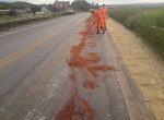 2° Pelotão do Corpo de Bombeiros, foi acionado para realizar limpeza de soja da pista na BR-365